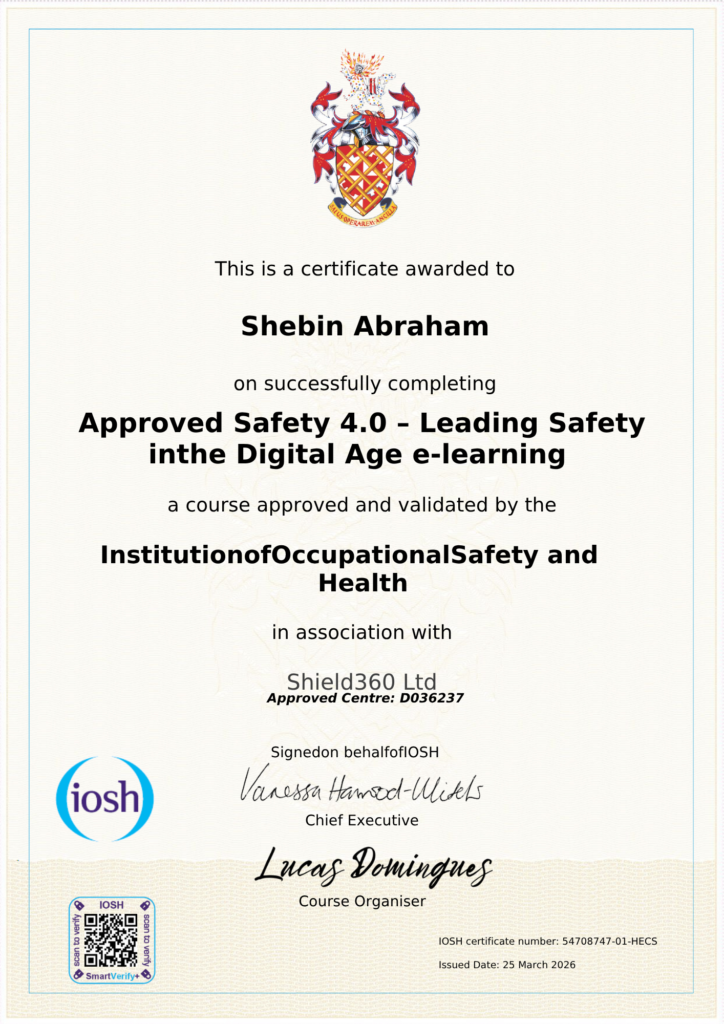 Shebin Abraham, a seasoned Occupational Health and Safety (OHS) professional, marks an impressive 20+ year career filled with multinational exposure and a diverse range of industry experience. He has worked with world’s major OHS Management systems.